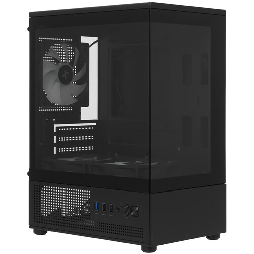 Корпус XASTRA Q300M собирается из стальных деталей, пластика и стекла, является основой для сборки домашнего или офисного системного блока с базовым функционалом. В модели с вертикальной ориентацией материнской платы достаточно пространства для подключения дискретного видеопроцессора длиной до 280 мм и системы охлаждения для центрального процессора до 160 мм высотой. Блок питания, который лучше выбирать с учетом энергопотребления всей сборки, в комплектацию корпуса не включен.