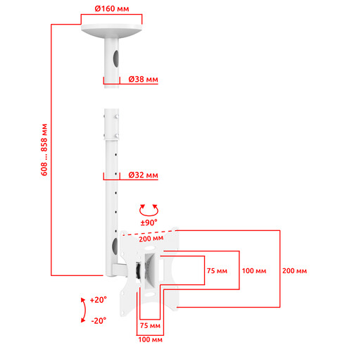 Телескопический потолочный, кронштейн для телевизора или монитора UNITEKI SNM2101NW в белом эксклюзивном окрасе.