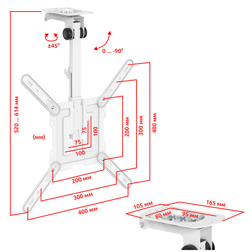 Дополнительновертикальное перемещение панели 95 мм, вылет от потолка в сложенном состоянии 83 мм, вылет от центра панели VESA до складывающегося колена 250 – 345 мм, складывающийся полуавтоматическийещё