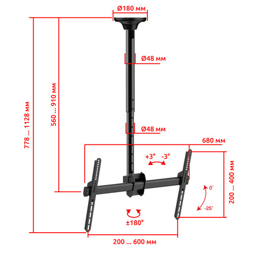 Представляем Вам потолочный наклонно поворотный кронштейн для телевизора или монитора UNITEKI SNM4146 в черном окрасе.