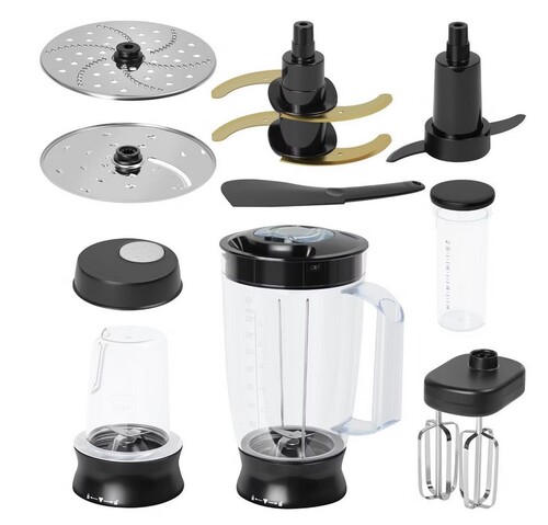 • Комплектациядиск для драников, диск для мелкого натирания и тонкой нарезки, документация, кофемолка, лопатка, мерный стаканчик, насадка-венчик, насадка-крюк, толкатель, универсальный нож, чаша блендера, чаша измельчителяещё