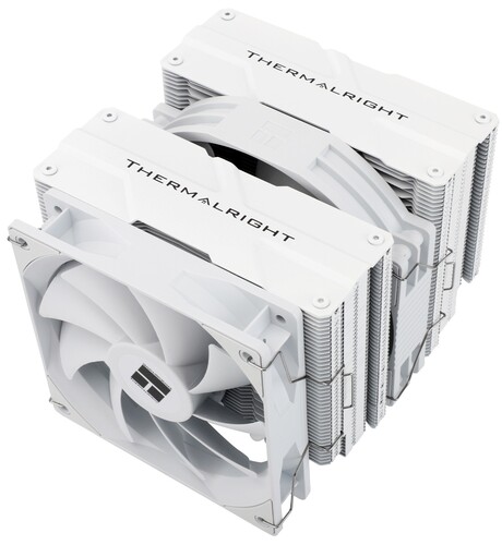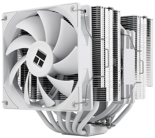 Кулер для процессора Thermalright Peerless Assassin 140 WHITE с массивным радиатором из алюминия, медной никелированной базой и 6 теплотрубками. Совместимое с сокетами AM4/5, LGA 115X/1200/1700/1851/2011/2066 устройство охлаждения позволяет привести к норме температуру ЦПУ под нагрузкой. Башенный кулер белого цвета отличается высотой 158 мм и монтируется на тепловыделяющую крышку центрального процессора через слой термопасты. В кулере белого цвета Thermalright Peerless Assassin 140 WHITE пименены 2 вентилятора 120 и 140 мм с поддержкой оборотов до 1500 об/мин и питанием от коннектора 4-pin. Скорость вращения вентиляторов варьируется в зависимости от нагрузки на ЦПУ. Шумность воздушной системы охлаждения не превышает 25.6 дБ.