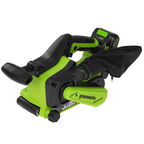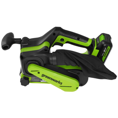 Ленточная шлифмашина Greenworks G24BS 259 м/мин, длина ленты - 457 мм, ширина ленты - 76 мм, АКБ, 1х2Ач и ЗУ, 24В, 4.3 кг