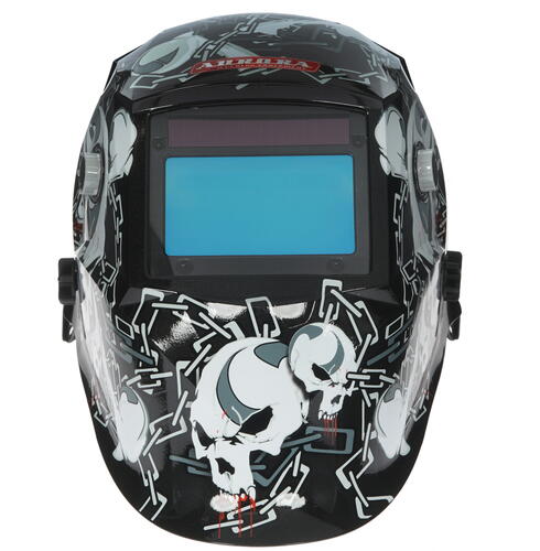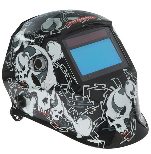 Маска сварочная Aurora SUN-7 Chain получила агрессивный дизайн. Специалисты уделяли особенное внимание не только ее характеристикам, но и оформлению. Забудьте об обычных и скучных черных масках, купите эту модель! Представленное изделие отличается значительной площадью смотрового окна. Его размеры – 99x55 мм. Обеспечивается широкий угол обзора, что станет преимуществом для специалистов при выполнении сварочных работ. Маска Aurora SUN-7 Chain произведена из полиэтилена по особой технологии. Этот полимер стоек к условиям эксплуатации, принимает на себя механические воздействия, ИК-излучение и т. д. Маска прослужит в течение длительного времени, сохранив свои первоначальные характеристики. Затемнение светофильтра – 9-13 DIN. Продолжительность перехода в режим сварки – 1/30000 секунды. Светофильтр получает необходимое питание от солнечного элемента и долговечной литиевой батарейки. Защитное стекло изготовлено из поликарбоната. Если потребовалось выполнить его замену, то эта процедура не вызовет затруднений у владельцев. Вес маски – 500 грамм. Крепление на голове происходит с помощью стандартного оголовья с возможностью его настройки под ваши анатомические особенности.