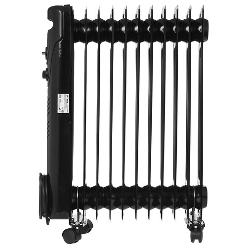 Масляный обогреватель используется для дополнительного обогрева и создания уютной атмосферы в помещениях. Он подходит для домашнего использования. Устройство черного цвета, переносное и напольное, с световым индикатором работы. Для удобства перемещения предусмотрены колеса и ручка. Шнур питания хранится в специальном отсеке. Обогреватель имеет стильный дизайн, быстро и бесшумно нагревается, не сушит воздух. Он оснащен тремя режимами обогрева: низким (1000 Вт), средним (1500 Вт) и высоким (2500 Вт). Регулируемый термостат поддерживает постоянную температуру в комнате, а защита от перегрева обеспечивает безопасность использования.