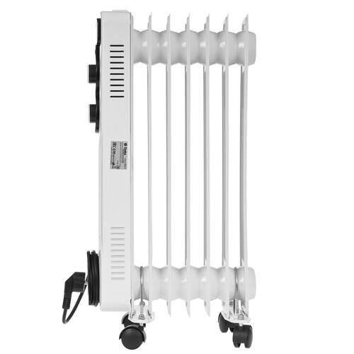 Масляный обогреватель используется для дополнительного обогрева и создания уютной атмосферы в помещениях. Он подходит для домашнего использования. Устройство черного цвета, переносное и напольное, с световым индикатором работы. Для удобства перемещения предусмотрены колеса и ручка. Шнур питания хранится в специальном отсеке. Обогреватель имеет стильный дизайн, быстро и бесшумно нагревается, не сушит воздух. Он оснащен тремя режимами обогрева: низким (600 Вт), средним (900 Вт) и высоким (1500 Вт). Регулируемый термостат поддерживает постоянную температуру в комнате, а защита от перегрева обеспечивает безопасность использования.