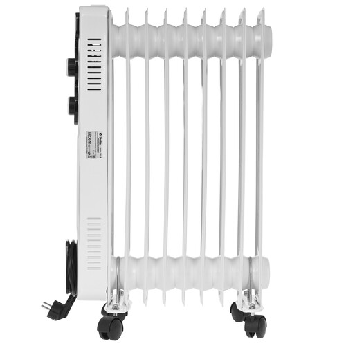 Масляный обогреватель используется для дополнительного обогрева и создания уютной атмосферы в помещениях. Он подходит для домашнего использования. Устройство черного цвета, переносное и напольное, с световым индикатором работы. Для удобства перемещения предусмотрены колеса и ручка. Шнур питания хранится в специальном отсеке. Обогреватель имеет стильный дизайн, быстро и бесшумно нагревается, не сушит воздух. Он оснащен тремя режимами обогрева: низким (800 Вт), средним (1200 Вт) и высоким (2000 Вт). Регулируемый термостат поддерживает постоянную температуру в комнате, а защита от перегрева обеспечивает безопасность использования.