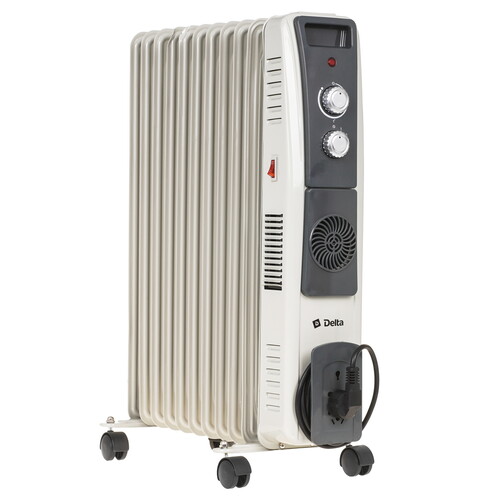Масляный обогреватель используется для дополнительного обогрева и создания уютной атмосферы в помещениях. Он подходит для домашнего использования. Устройство черного цвета, переносное и напольное, с световым индикатором работы. Для удобства перемещения предусмотрены колеса и ручка. Шнур питания хранится в специальном отсеке. Обогреватель имеет стильный дизайн, быстро и бесшумно нагревается, не сушит воздух. Он оснащен тремя режимами обогрева: низким (1000 Вт), средним (1500 Вт) и высоким (2500 Вт). Регулируемый термостат поддерживает постоянную температуру в комнате, а защита от перегрева обеспечивает безопасность использования. Встроенный вентилятор для улучшения циркуляции воздуха и быстрого прогрева помещения.