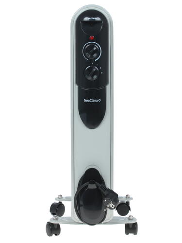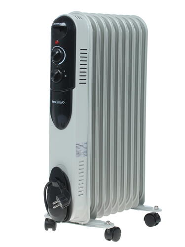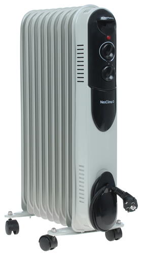 Масляный радиатор Neoclima NC 9309 используется в холодное время года, если система отопления в вашем доме не справляется с нагревом помещений. Также представленный прибор может пригодиться ранней осенью и поздней весной, когда отопление уже отключили, но за окном еще недостаточно тепло. Модель имеет классический черно-белый дизайн, благодаря которому она будет уместно смотреться в любых условиях и в любом интерьере. 9-секционное устройство играючи справится с обогревом помещений, чья площадь не превышает 20 м². Масляный радиатор Neoclima NC 9309 оборудован удобной ручкой и колесиками, благодаря которым вы сможете самостоятельно переместить его из одной комнаты в другую. Благодаря высокой мощности 2000 Вт на нагрев прибора уходит минимум времени после его включения. Для питания устройства его необходимо подключить к электросети с напряжением 220/230 В при помощи сетевого шнура длиной 1.5, который присутствует в его оснащении. В радиаторе предусмотрена регулировка мощности нагрева и встроенный термостат.