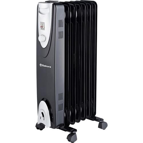 Обогреватель масляный SA-0377B выполнен в черном цвете, обладает мощностью 1500 Вт.