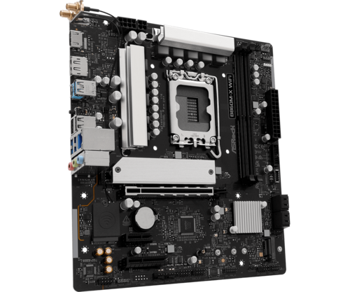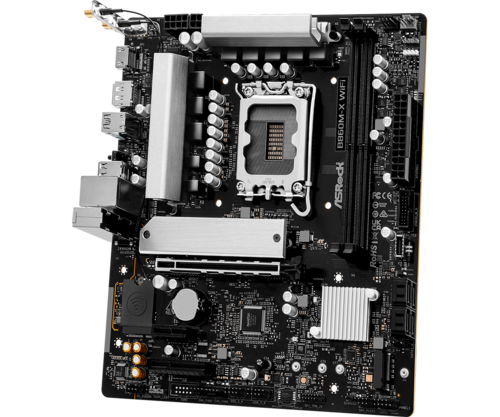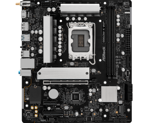 Материнская плата ASRock B860M-X WiFi – устройство форм-фактора Micro-ATX с размерами 244x218 мм подходит для сборки мощного универсального компьютера для дома или офиса. Плата работает под управлением чипсета Intel B860 и поддерживает Intel Core Ultra (серия 2). Схема питания 7+1+1+1+1 гарантирует реализацию потенциала мощных игровых CPU, а подсистема памяти с поддержкой технологий разгона XMP 3.0 обеспечивает стабильность работы модулей DDR5. Максимальный объем ОЗУ равен 128 ГБ.