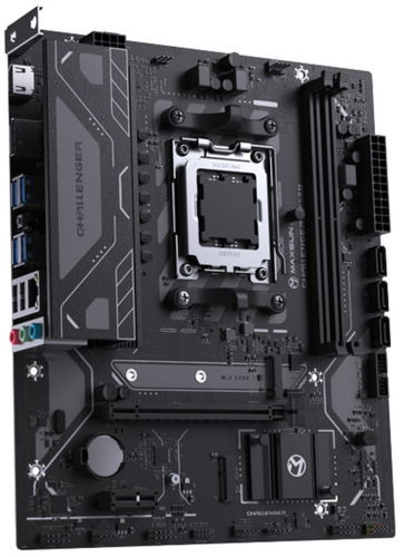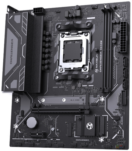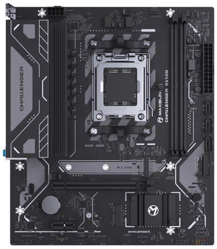 Материнская плата MAXSUN Challenger B650M станет надежным решением для сборки офисной рабочей станции. Она выполнена в форм-факторе m-ATX и содержит в своей основе чипсет AMD B650 с процессорным разъемом AM5. В оснащение платы входят 2 слота под размещение до 128 ГБ оперативной памяти, 3 разъема SATAIII и 1 разъем M.2 под установку накопителей, один слот расширения PCI-E x16 для графических адаптеров.