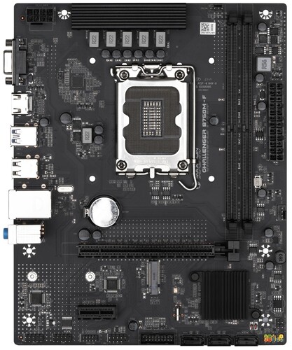 Материнская плата MaxSun Challenger B760M-F станет надежным решением для сборки офисной рабочей станции. Она выполнена в форм-факторе Micro-ATX и содержит в своей основе чипсет Intel B760 с процессорным разъемом LGA 1700. В оснащение платы входят 2 слота под размещение до 64 ГБ оперативной памяти, 3 разъема SATAIII и 1 разъем M.2 под установку накопителей, по одному слоту расширения PCI-E x16 и PCI-E x1 для графических адаптеров.