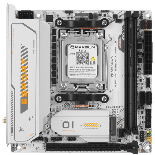 Материнская плата MaxSun eSport B650ITX WIFI ICE обладает свойствами производительной и надежной основы для сборки игрового настольного компьютера. Она выполнена в форм-факторе Mini-ITX и поддерживает многоядерные процессоры AMD в исполнении AM5. Эта модель предусматривает установку максимум двух модулей DDR5. Плата оснащена одним слотом расширения PCI-E x16, 2 разъемами M.2 и 2 слотами SATA для комплектующих.