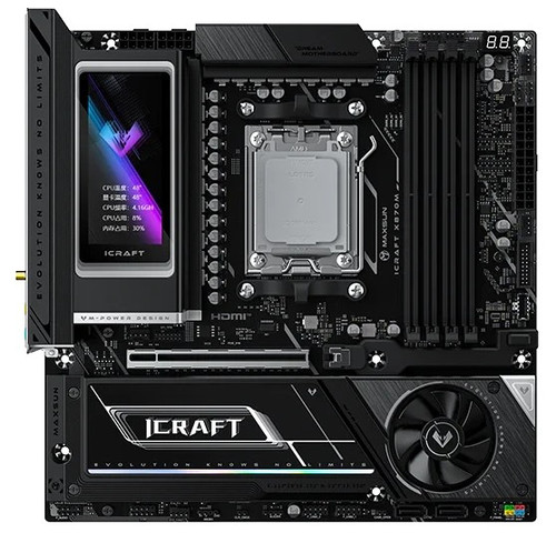 Материнская плата MaxSun iCraft X870M станет надежным решением для игровой станции. Она выполнена в форм-факторе mATX и содержит в своей основе чипсет AMD X870 с процессорным разъемом AM5. В оснащение платы входят 4 слота под размещение до 192 ГБ оперативной памяти, 2 разъема SATA III и 3 разъема M.2 под установку накопителей.