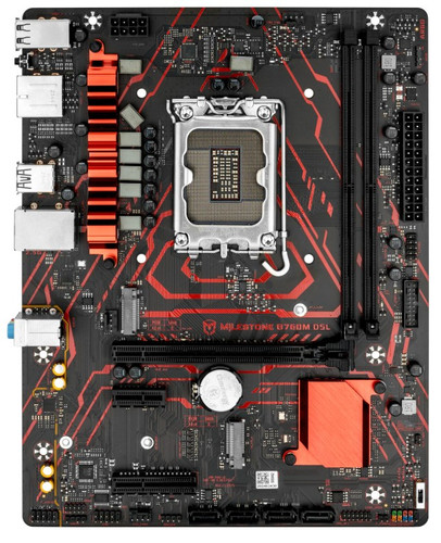 Материнская плата MAXSUN Milestone B760M D5L V2 соответствует форм-фактору Micro-ATX и рассчитана на создание компактного универсального системного блока для дома или офиса. Модель работает под управлением чипсета Intel B760 и поддерживает процессоры Intel с ядрами Alder Lake, Raptor Lake и Raptor Lake Refresh. Температурную стабильность платы обеспечивают радиаторы зоны VRM и чипсета. В модели реализованы 2,5-гигабитный проводной сетевой адаптер и аудиочип Conexant CX20632.
