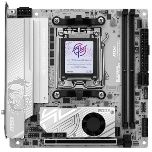 Материнская плата MPG B850I EDGE TI WIFI выполнена в серебристо-белой цветовой гамме, что делает ее идеальным выбором для любителей белых сборок ПК, стремящихся подчеркнуть свою индивидуальность. Она обладает высокой производительностью благодаря поддержке технологии Wi-Fi 7, 5G LAN, совместимости с PCIe 5.0, а также дополнительным питанием PCIe. Это лучшая материнская плата формата ITX с белой тематикой для процессоров AMD Ryzen серии 9000.