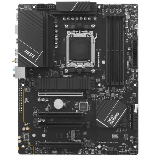 Материнская плата MSI PRO B650-P WIFI из профессиональной серии создана для обеспечения продуктивности и надежности в ресурсоемких программах. Она выполнена в полноразмерном формате. В плате реализованы 4 слота под установку до 128 ГБ оперативной памяти стандарта DDR5, слоты расширения PCI-E x16 и PCI-E x1 для графического адаптера, 2 разъема M.2 и 6 слотов SATA под накопители. Одна из особенностей MSI PRO B650-P WIFI – интегрированный модуль с поддержкой Wi-Fi и Bluetooth. Для проводной синхронизации с Интернетом предлагается коннектор LAN 2.5 Гбит/с. На панели ввода/вывода расположены порты USB, видеовыходы DisplayPort и HDMI, разъемы аудио. Материнская плата основана на надежных компонентах и гарантирует бесперебойную работу системы ПК.
