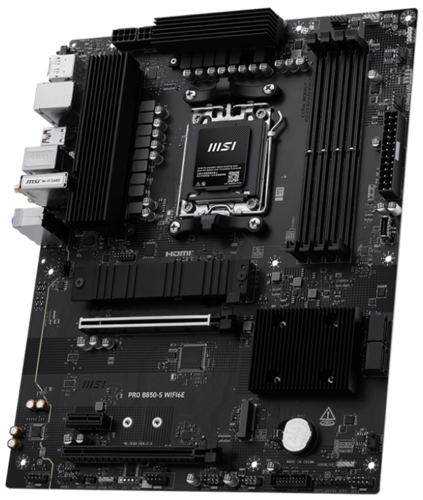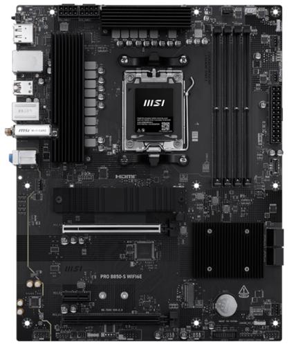 MSI PRO B850-S WIFI6E отличается лаконичным дизайном и гармоничной цветовой гаммой, идеально подходящей для чёрных ПК. Плата оснащена множеством эксклюзивных функций MSI: Wi-Fi 6E с антенной EZ, 2.5G LAN и PCIe 5.0 M.2 с M.2 Shield Frozr, а также поддерживает процессоры AMD Ryzen серии 9000.