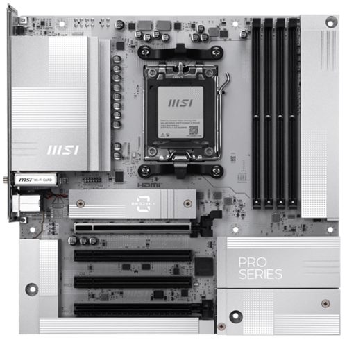Серия PRO предназначена для профессионалов из всех сфер деятельности. Эта линейка отличается впечатляющей производительностью и высоким качеством, обеспечивая пользователям непревзойденный опыт работы. Пользователи, которым важны производительность и эффективность, могут положиться на серию MSI PRO, которая поможет им справиться с многозадачностью и повысить эффективность. PRO B850M-A WIFI PZ отличается элегантным дизайном в гармоничной серебристо-белой цветовой гамме, идеально подходящей для белых ПК. Инновационная конструкция с задней панелью упрощает прокладку кабелей, придавая системе эстетичный вид. Плата оснащена множеством эксклюзивных функций MSI, включая Wi-Fi 7 с антенной EZ, 5G LAN, PCIe 5.0 M.2 и дополнительный модуль питания PCIe Power, а также поддерживает процессоры AMD Ryzen серии 9000.