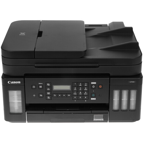 МФУ струйное Canon Pixma G7040 позволяет в высоком качестве выполнять печать, копирование и сканирование разнообразных информационных документов, а также отправлять документы по факсу. В данной модели реализованы система непрерывной подачи чернил и функция двусторонней печати. В лоток, предназначенный для подачи, можно загрузить максимум 350 листов бумаги формата А4. Печать документов или изображений может выполняться на обычной бумаге или фотобумаге, конвертах, наклейках. В МФУ Canon Pixma G7040 имеются разъемы Ethernet (RJ-45) и USB, а также поддержка стандарта беспроводной связи Wi-Fi. Панель управления с дисплеем гарантирует простую настройку необходимых параметров.