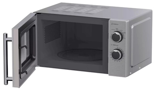 Микроволновая печь соло HMG-MM207SA. Зеркальная дверца открывается налево, с помощью внешней ручки. Объем камеры микроволновой печи 20 л, внутренняя камера с поворотным столом позволит быстро подогреть или приготовить блюдо. Микроволновая печь с управлением при помощи механических регуляторов на передней панели. Работа на шести уровнях мощности, что позволяет легко подобрать подходящие настройки для разогрева и приготовления различных блюд быстро и равномерно. Галогенные лампы служат в два раза дольше, чем лампы накаливания. У них отличная светоотдача: весь процесс приготовления будет как на ладони.