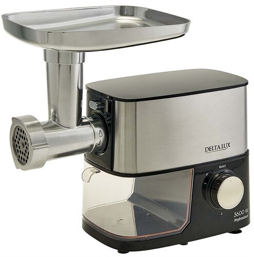 Мясорубка электрическая DELTA LUX DE-602M предназначена для измельчения вареного или сырого мяса и подобных продуктов, а также может использоваться для изготовления колбасок, печенья в бытовых и аналогичных условиях. Максимальная мощность 3600 Вт. Номинальная потребляемая мощность 500. Производительность 2,5 кг/мин. Объем контейнера для фарша 1 литр.