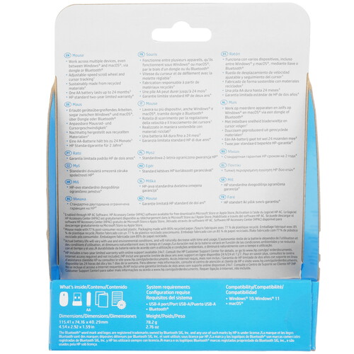 Мышь беспроводная HP 430 позволяет подключать до двух устройств одновременно, имеет программируемые кнопки, эргономичный дизайн и может работать до 24 месяцев от одной батарейки.