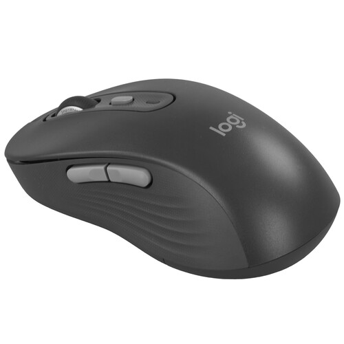 Мышь беспроводная Logitech Signature Plus M750L (910-006266) Черная: это крупная (Large) эргономичная модель с 6 кнопками (лево/право, назад/вперед, колесо с кликом, кнопка DPI), датчиком Logitech Advanced Optical Tracking с номинальным 400 DPI и максимальным до 4000 DPI, поддержкой Logi Bolt (2.4 ГГц) и Bluetooth Low Energy, радиусом до 10 м и временем работы до 24 месяцев через приемник или до 20 месяцев по Bluetooth от одной батарейки AA. Габариты: 118.19×65.63×41.52 мм, вес около 111.2 г (включая батарейку и приемник), совместима с Windows 10/11, macOS, Linux, ChromeOS, iPadOS 13.4+ и Android 5.0+, настраивается через Logi Options+.