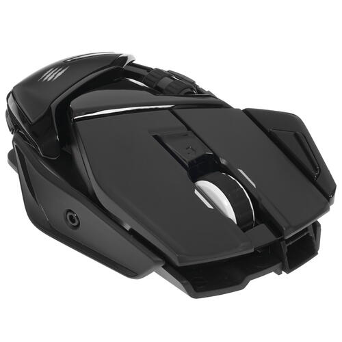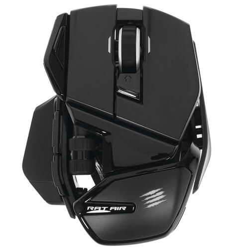 Мышь беспроводная/проводная Mad Catz R.A.T. AIR – уникальная игровая модель с зарядкой прямо от коврика. Подключение коврика благодаря особой технологии осуществляется при помощи 2-метрового кабеля с USB-портом и питанием по шине или от встроенного аккумулятора. Также особенностью данной модели является наличие изменяемых габаритов и увеличенного ресурса кнопок, достигающего 20 млн нажатий. Устройство Mad Catz R.A.T. AIR представлено в черном пластиковом корпусе и предназначено для хвата правой рукой. Мышь оснащена собственным сенсором PixArt PMW3360, действующим при разрешении датчика, достигающего 12000 dpi. Предусматривается наличие десяти кнопок управления, среди которых имеются программируемые клавиши. Мышь представлена в стильном черном дизайне с логотипом производителя и RGB-подсветкой.