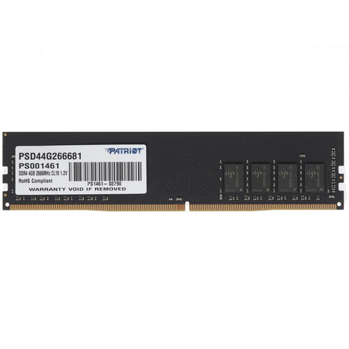Оперативная память Patriot Signature Line [PSD44G266681] 4 ГБ относится к типу DIMM DDR4 и характеризуется пропускной способностью PC21300, поддерживая работу с тактовой частотой 2666 МГц. Этот компонент характеризуется объемом 4 ГБ и подходит для применения в домашней станции или рабочей машине для офиса. Эта планка может выступать в качестве основного и единственного модуля ОЗУ в вашей сборке, но допускает и параллельную работу с другой планкой, близкой по рабочим параметрам. Оперативную память Patriot Signature Line [PSD44G266681], рассчитанную на работу при входном напряжении 1.2 В, можно использовать как средство апгрейда системного блока, быстродействие которого не устраивает вас.