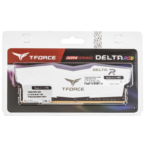 Оперативная память Team Group DELTA RGB [TF4D416G3200HC16F01] – модуль UDIMM DDR4 с дизайном в белом цвете и объемом 16 ГБ. Устройство с тактовой частотой 3200 МГц и таймингами 16-20-20-40 ориентировано на сборку и модернизацию игровых системных блоков. Пропускная способность памяти – 25600 МБ/с. Она гарантирует необходимую скорость обмена информацией между процессором и другими системными компонентами в большинстве игр и при работе с офисными пакетами, файловыми менеджерами, антивирусами, архиваторами, базами данных, мультимедиа-плеерами и другим типовым программным обеспечением в любых операционных системах. Совместимость памяти с CPU и материнскими платами расширена поддержкой частот от 1600 МГц. Модуль подходит для оснащения универсальных офисных и домашних компьютеров. Разгонные возможности оперативной памяти Team Group DELTA RGB [TF4D416G3200HC16F01] реализует технология XMP 2.0. Напряжение питания устройства повышено до 1.35 В. При любых нагрузках память защищена от перегрева крупным радиатором. Украшение модуля – многоцветная подсветка.