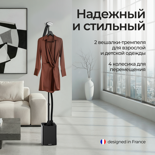 Вертикальный отпариватель SteamOne HENRI 2 (EUJK300B) — это обновлённая модель с улучшенными характеристиками. Объём емкости для воды 1,8 литра, а мощность 2000 Вт. Подача пара 42 граммов в минуту, что помогает быстро и эффективно разгладить любую вещь. В комплекте идёт раздвижная стойка, которая позволяет разместить вещи на вешалке. Нагревается прибор в течение 60 секунд, а непрерывно работает 45 минут. Также у HENRI 2 (EUJK300B) предусмотрены колёсики для удобного перемещения отпаривателя.