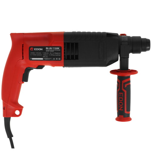 Перфоратор ручной электрический Edon RH-26/1150M легкого класса предназначен как для сверления отверстий в различных материалах, так и для штробления в режиме удара, идеально подходит для монтажа, там где длительное время оператору необходимо держать в руках инструмент. Для удобства работы в ограниченных пространствах в режиме удара, есть режим расцепляющий патрон инструмента и редуктор, что позволяет установить рабочий инструмент (долото, штробник) под необходимым углом, после чего перевести в режим удара и комфортно для оператора продолжить работу. Реверс выполнен на щеточном узле электродвигателя положительно влияет на ресурс перфоратора и исключает возможность случайного переключения. Наличие предохранительной муфты позволяет избежать травм при заклинивании рабочего инструмента. Наличие дополнительной системы охлаждения ствола и редуктора позволяет значительно увеличить период непрерывной работы.