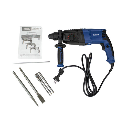 Перфоратор REDBO RHD-26/1150 работает в режимах долбления, обычного и сверления с ударом. Инструмент с патроном SDS-plus совместим с разными типами оснастки. Есть функция Vario-Lock для поворота зубила в нужном направлении без запуска устройства. Реверс помогает мгновенно переключаться между режимами влево/вправо для изъятия застрявшего патрона. Ограничитель глубины сверления не позволяет случайно просверлить тонкую стену насквозь.