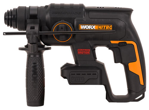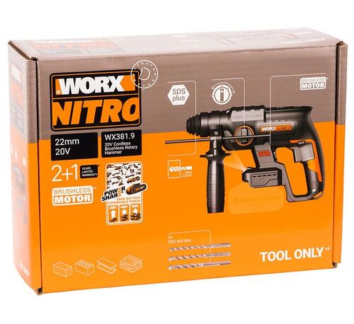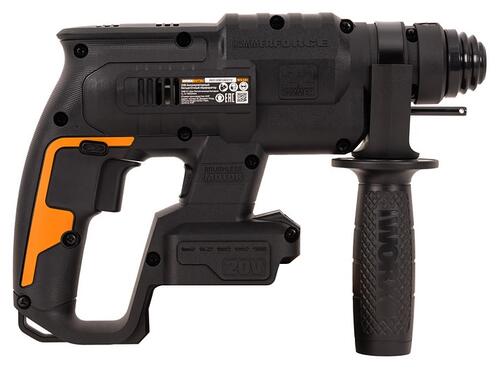 Универсальный перфоратор WORX WX381.9 совместил в себе сразу 3 режима работы: сверление, ударное сверление и долбление. Также предусмотрена возможность регулировки положения долота в патроне. Благодаря скорости вращения до 1350 оборотов в минуту и ударной энергии 2,0 Дж со скоростью до 4700 ударов в минуту, перфоратор помогает легко сносить стены и разбивать бетонные блоки. Инструмент может без усилий сверлить бетон толщиной до 22 мм, дерево толщиной до 28 мм и сталь толщиной до 13 мм.