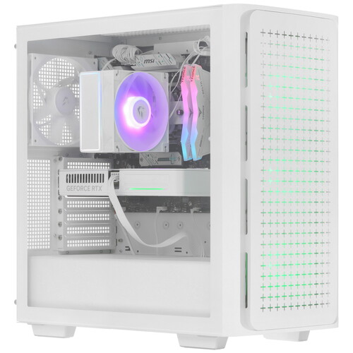 ПК ARDOR GAMING RAGE – игровой компьютер в корпусе типоразмера Mid-Tower. Модель поставляется без операционной системы. Основные компоненты конфигурации системного блока – процессор AMD Ryzen 5, оперативная память DDR5 и видеокарта GeForce RTX. Данные хранятся на SSD с объемом 1000 ГБ.