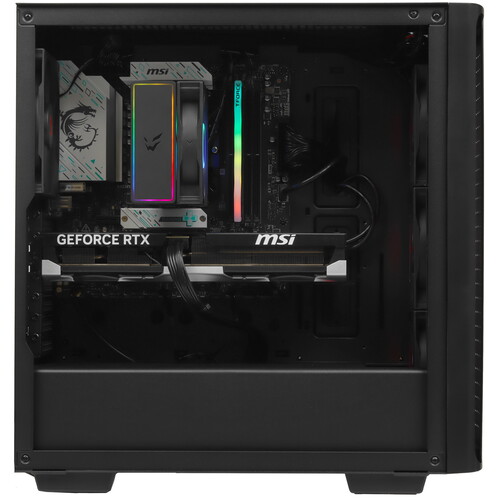 ПК ARDOR GAMING RAGE H462 оснащен 6-ядерным процессором AMD Ryzen 5 7500F, 16 ГБ оперативной памяти и дискретной видеокартой GeForce RTX 5070 с модулем GDDR7 на 12 ГБ. Эта конфигурация подойдет для комфортного гейминга в играх 2K и 4K с поддержкой трассировки лучей и DLSS. Корпус в форм-факторе Mid-Tower подходит для размещения материнских плат ATX, Micro-ATX и Mini-ITX и вмещают длинные видеокарты. Внутрь поместятся высокие кулеры воздушного охлаждения или водяная система отвода тепла. Это позволяет собрать мощный игровой или рабочий компьютер. Жесткий диск вмещает до 1 ТБ информации. ПК ARDOR GAMING RAGE H462 подключается к интернету через проводной LAN-канал со скоростью до 2.5 Гбит/с или по беспроводной сети Wi-Fi 6. Bluetooth обеспечивает связь со смартфоном, беспроводными контроллерами, умными колонками. 11 USB портов достаточно для подсоединения всей нужной периферии + 2-3 внешних накопителя. Аналоговые аудиоразъемы нужны для подключения проводных наушников, микрофонов, колонок, саундбара. С помощью разъема SMA можно установить дополнительную антенну Wi-Fi и увеличить радиус действия Wi-Fi-сети. В корпусе есть боковое окно. Оно позволяет видеть систему вентиляции и состояние плат без разбора конструкции.