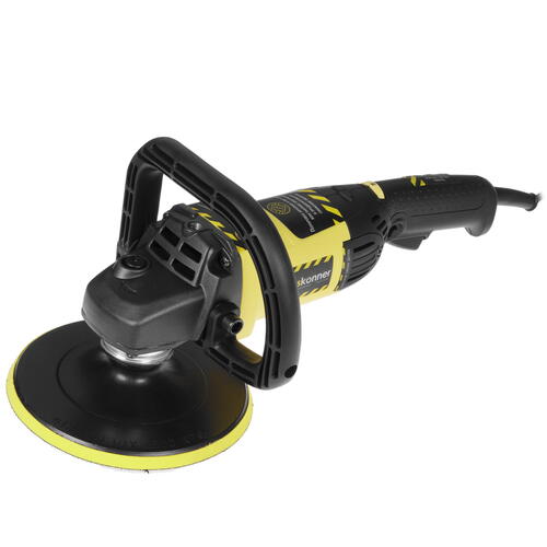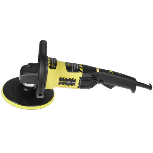 Полировальная машинка Hanskonner HAG918CP предназначена для работы с насадками на 18 см. Конструкция оснащена эргономичным корпусом со шпинделем М14. Оборудование способно действовать со скоростью 500-3000 об/мин, которая легко регулируется пользователем. Также предусматривается наличие системы поддержания постоянных оборотов под нагрузкой. Прибор Hanskonner HAG918CP дополнен ограничителем пускового тока. Фиксация полировальных насадок осуществляется с помощью завязки. Инструмент подключается к электросети с помощью 4-метрового кабеля. Прибор поставляется с дополнительной рукояткой, шестигранным ключом, полировальной подошвой и чехлом.