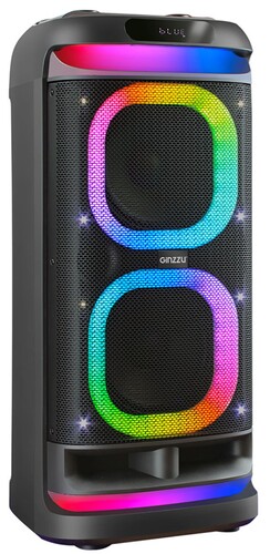 GiNZZU GM-115 - большая и мощная система со встроенным аккумулятором. Два больших 20,3 см (8 дюймов) динамика и твитер, установленные в большой корпус, раскачают вечеринку мощным звуком. Благодаря аккумулятору музыка будет всегда с вами даже там, где нет розеток. Стробоскопы и световые эффекты динамической подсветки создадут атмосферу праздника. Танцуйте вместе с пульсирующей в такт музыке подсветкой динамиков