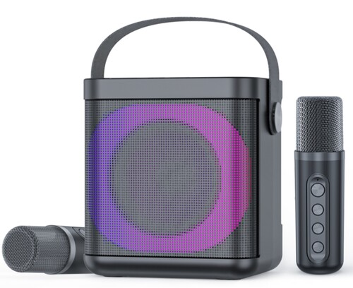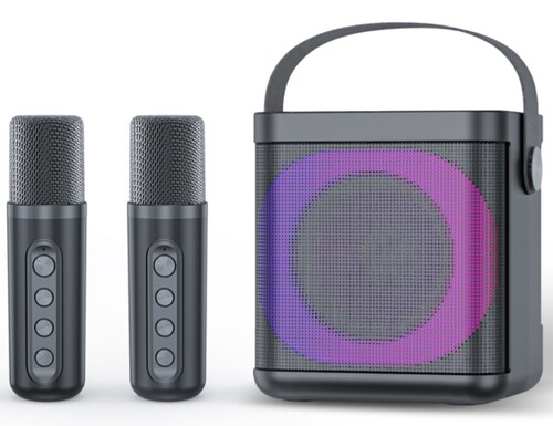 iconBIT K702B - Bluetooth колонка с двумя беспроводными микрофонами и функцией караоке. Подключение колонки к смартфону или другим устройствам осуществляется с помощью Bluetooth или аудио кабеля. Беспроводные микрофоны подключаются к колонке автоматически. K702B обеспечивает чистое и громкое звучание голоса и музыки, а RGB подсветка создаст удивительную атмосферу. Функция создания минусовок — возможность заглушать голос вокалиста в песне, воспроизводить музыку с USB флешки или карты памяти microSD.