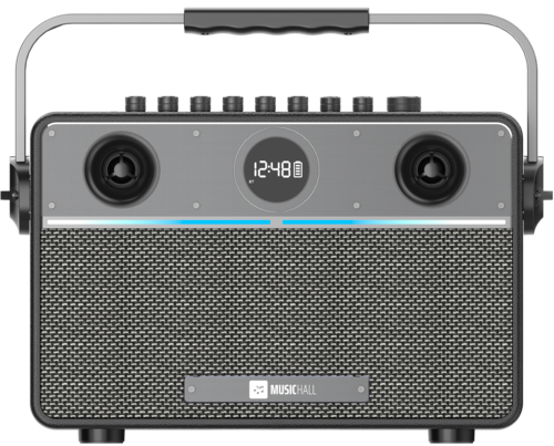 MusicHall SoundMaster Basic - портативная аудиосистема мощностью 110 Вт, с поддержкой режима TWS и функцией караоке. В комплекте прилагаются пульт управления два беспроводных микрофона.