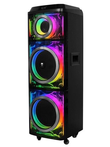 УРАЛ Молот 203 - портативная аудиосистема с функцией караоке мощностью 2000 Вт, динамики 1" и 2×8", широкий частотный диапазон 55–18 000 Гц. Поддержка Bluetooth 5.0 с TWS, аккумулятор 9000 мАч обеспечивает до 8 часов работы. Встроенный powerbank, FM-радио, эквалайзер и запись с микрофона. В комплекте беспроводной микрофон и множество вариантов подключения (AUX, USB, MicroSD, гитара). Эффектная LED-подсветка для создания атмосферы.