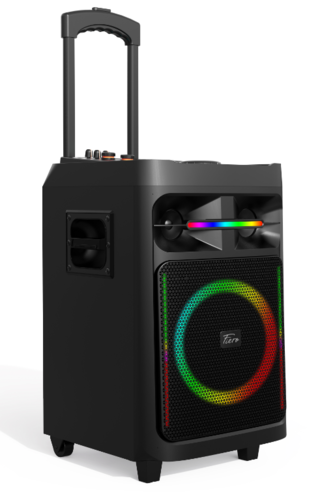 Портативная колонка Fiero Maletas FRPA-200 черного цвета формата 2.1 оснащена тремя динамиками мощностью 80 Вт. Она проигрывает громкий звук в стереоформате. Регулировка низких и высоких частот позволяет настроить звучание под разные стили музыки или конкретный трек. Модель проигрывает файлы в формате MP3, WAV, WMA. Колонка воспроизводит музыку со смартфона по Bluetooth, с ПК через AUX или с USB-накопителя. Также через нее вы сможете ловить радио без внешней антенны и слушать станции в диапазоне 87.5-108.0 МГц. Портативная колонка Fiero Maletas FRPA-200 оснащена дисплеем. На нем будет видно названия треков, уровень громкости, настройки эквалайзера. К устройству можно подключить два микрофона для пения в караоке с использованием разных эффектов: приоритет микрофона, изменение тональности вокала или его удаление. Также колонка может выступать в качестве усилителя для электрогитары. Оборудование можно объединить с другими моделями для объемного звучания. Устройство питается двумя способами: от сети 220/240 В или Li-Ion-аккумулятора. АКБ обеспечивает до 4.5 часов автономной работы.