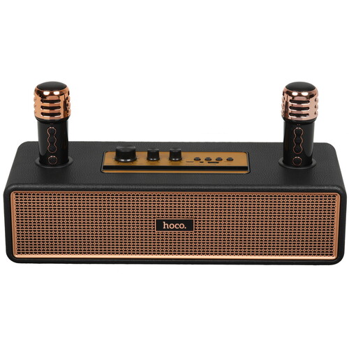 Беспроводная Bluetooth-колонка Hoco BS63 Graceful с двумя микрофонами — мощный звук, смелый дизайн. Ищете идеальную звуковую систему с поддержкой беспроводного микрофона? Беспроводная Bluetooth-колонка Hoco BS63 Graceful с двумя микрофонами — это стандарт качества звука для вечеринок, мероприятий и караоке.