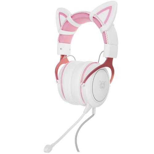 Onikuma X10 - проводная гарнитура с полноразмерными мягкими чашами, съемным микрофоном и RGB-подсветкой. В комплекте поставляются милые кошачьи ушки.