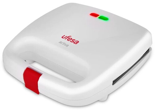 Простая и небольшая электросэндвичница Ufesa SW7850 Activa мощностью 750 Вт быстро приготовит горячие бутерброды. Рабочая поверхность с антипригарным покрытием вмещает 2 кусочка хлеба. Фиксатор на ручках способствует удобству хранения прибора.