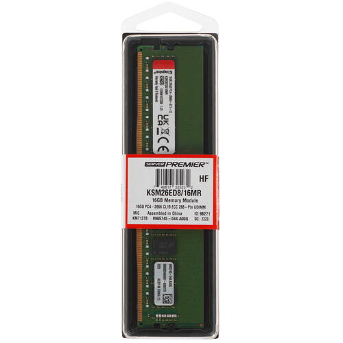 Серверная оперативная память Kingston Server Premier соответствует высоким стандартам качества и надежности, обеспечивая производительность в составе рабочих станций и серверного оборудования. Тестирование на принудительный отказ в интенсивном режиме и технология коррекции ошибок ECC гарантируют стабильность круглосуточной работы сервера с высокими вычислительными нагрузками. Данный модуль Kingston Server Premier стандарта DDR4 отличается объемом 16 ГБ и функционированием на частоте 2666 МГц. Небольшая высота планки гарантирует широкую совместимость и удобство установки.