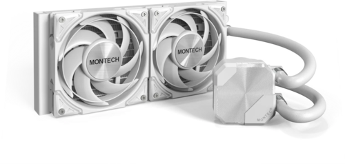 Система охлаждения Montech HyperFlow Silent 240 White представлена в белом цвете. Медный водоблок, алюминиевый радиатор и 2 вентилятора размером 120x120 мм защищают процессор от перегрева при разной вычислительной нагрузке.