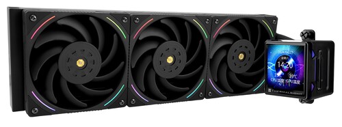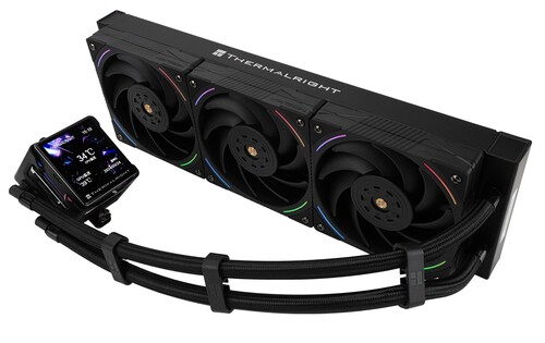 Система водяного охлаждения Thermalright Elite Vision 360 ARGB Black оснащена тремя вентиляторами размером 120x120 мм и подходят для LGA 1150, LGA 1151, LGA 1151-v2, LGA 1155, LGA 1156, LGA 1200, LGA 1700, LGA 1851, LGA 2011, LGA 2066, AM4, AM5.
